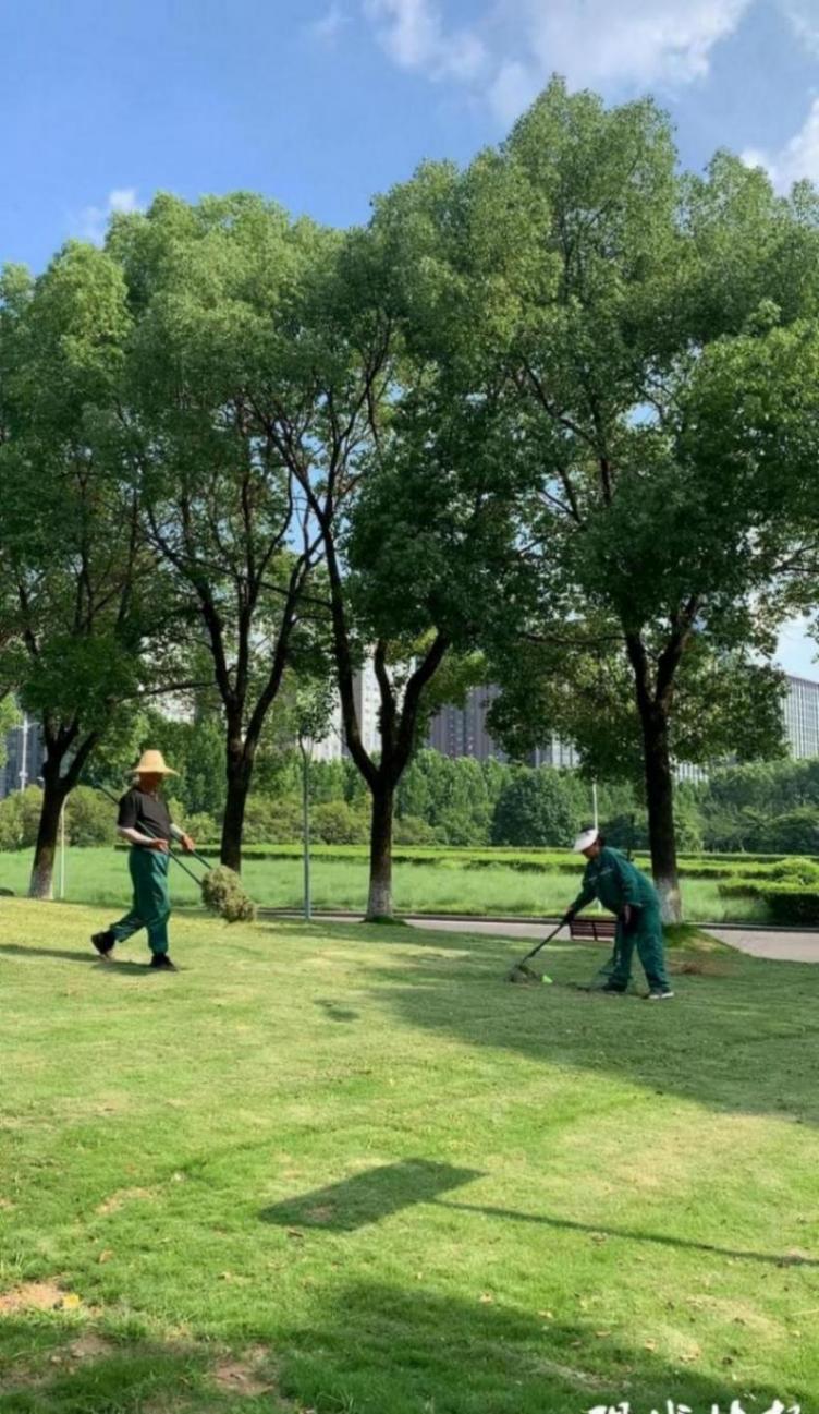 东门那块绿化带新装了三个足球造型的装饰,说是建邺区为了配合比赛摆的。走到里面,几个工人在剪草坪,草绿得跟电脑桌面似的。旁边的喷泉刚换过水,清澈得能照出人影。