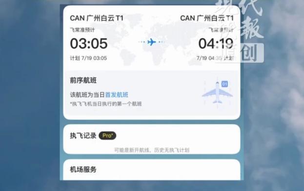 民航业内人士表示:其实经常有这种试飞航班。不过近期有台风来临,7月19日白云机场天气不佳,平台“赏月航班”的信息标注有点奇怪。