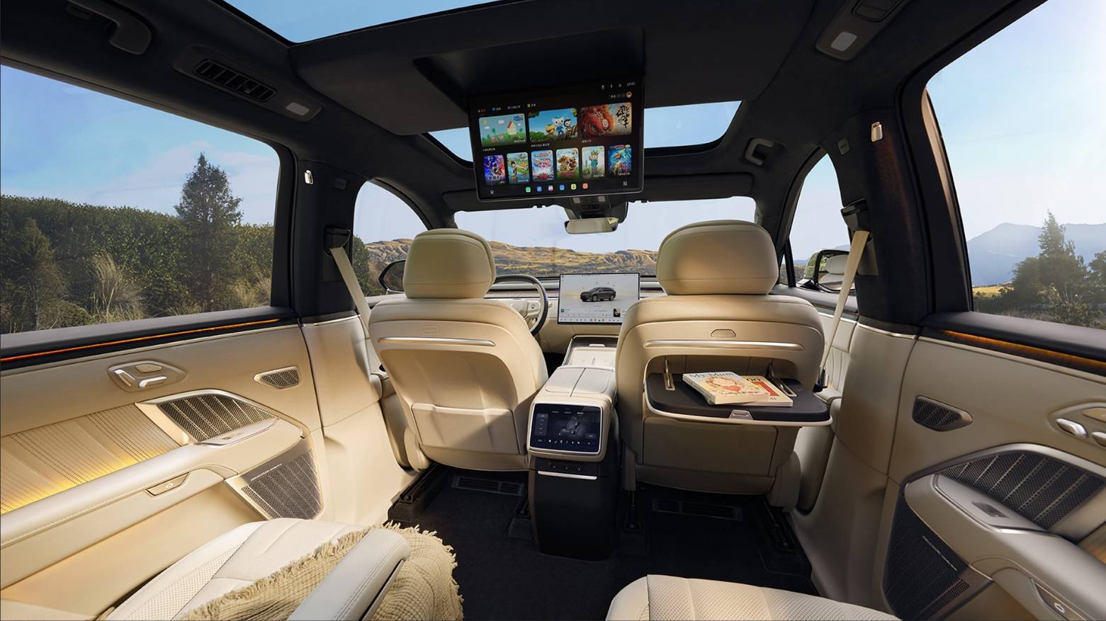内饰设计风格很“家族”,基本延续理想家族式内饰布局,采用主驾屏+副驾屏布局,还有方向盘屏+AR-HUD抬头显示的组合。尺寸方面,长宽高分别为5085/1960/1740mm,轴距为3050mm,车内采用六座布局。