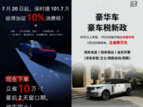 以7月20日为分界线,在7月17日-7月19日期间,涉及的超豪华汽车品牌纷纷开启“叫卖”模式,“虚火”旺盛。保时捷、揽胜等汽车品牌经销商以“最后的时间窗口”,换得了消费者抢购的短暂火爆场面。