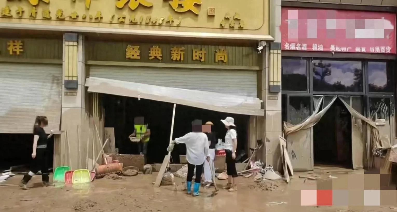 叶先生一家正在统计损失,但保险柜还没找到,现在也不知道里面多少钱被冲走了。其他商铺也损失惨重,隔壁商户说这次洪水比往年大得多,他们家光货物就被冲走了几十万。一位参与清淤的工人说,这几天在泥里挖到不少戒指项链,但不确定是不是这家的。