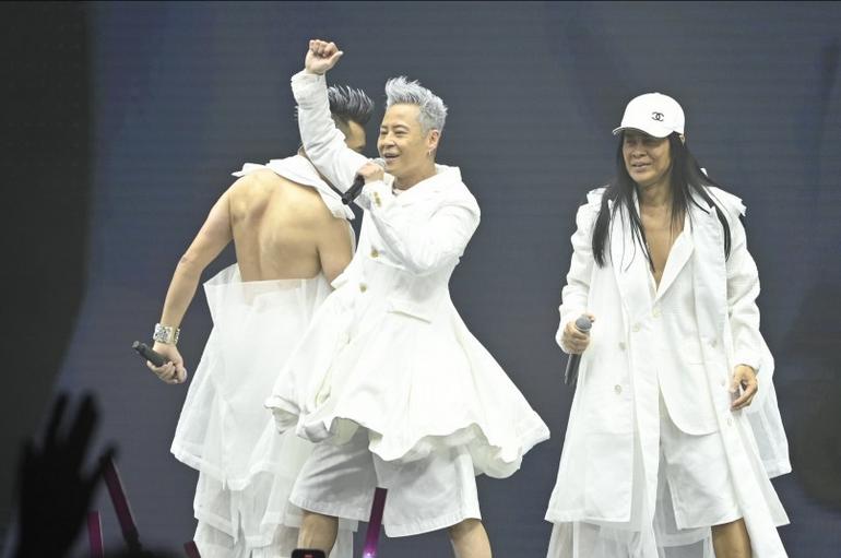 陈慧琳(Kelly)一共十场的香港红馆演唱会27日晚迎来尾场,嘉宾则由草蜢担任,这也是蔡一杰(杰仔)完成脑部手术后首次公开演出。