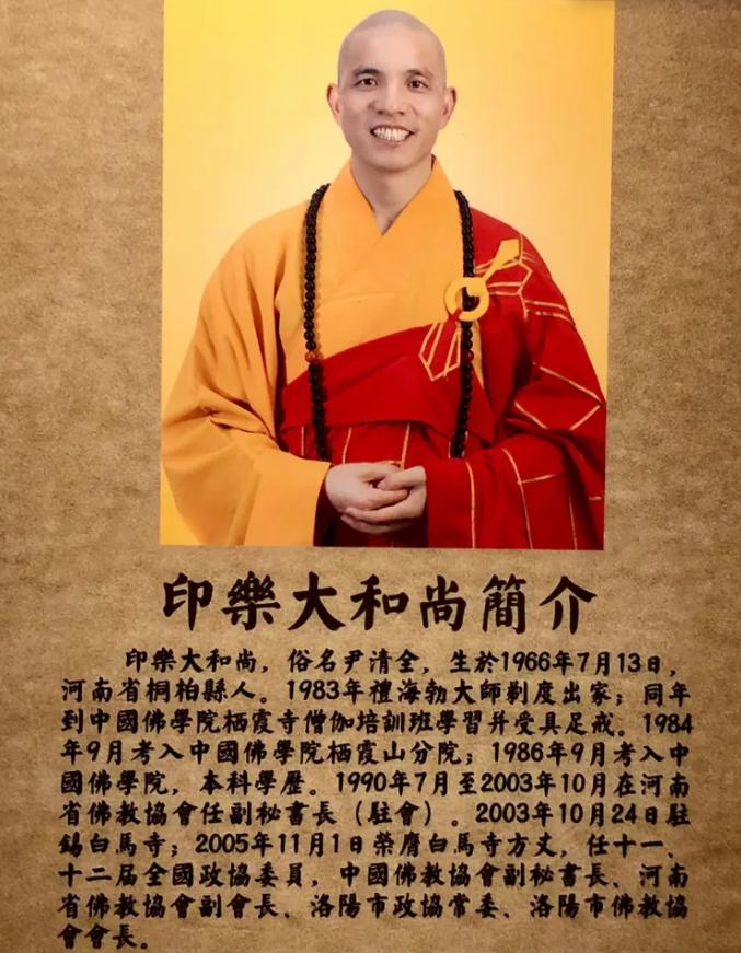 2003年,受河南省佛教协会委派,印乐法师到洛阳白马寺主持工作。