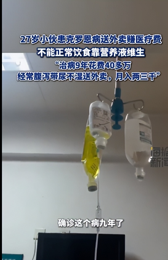 27 岁小伙患克罗恩病 9 年花费 40 多万,靠营养液维生、戴尿不湿送外卖:与免疫系统的艰难抗争