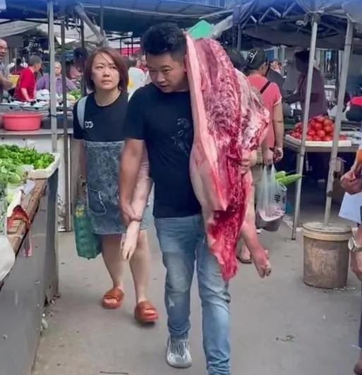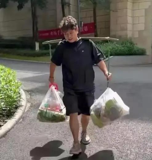 一根扁担成为他采购食物的标志性工具。家里有两个冰箱专门放菜和水果,日常需要炒七八个菜,肉一天要消耗五六斤到七八斤不等。