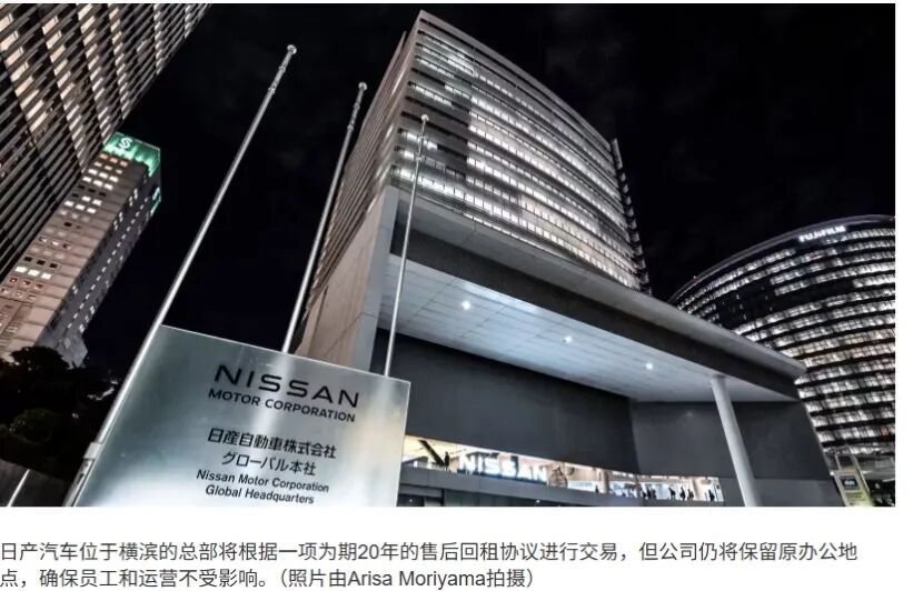 五月就提出的卖楼计划,这次真的要实行了。据《日本经济新闻》报道,陷入经营困难的日本汽车制造商日产公司11月6日宣布,将出售位于横滨的总部大楼,价格为970亿日元(约合45亿元人民币)。这些资金将用于改善公司的财务状况。据报道,出售手续将于今年12月完成,出售后日产公司仍将继续使用总部大楼,但需按期缴纳租金。