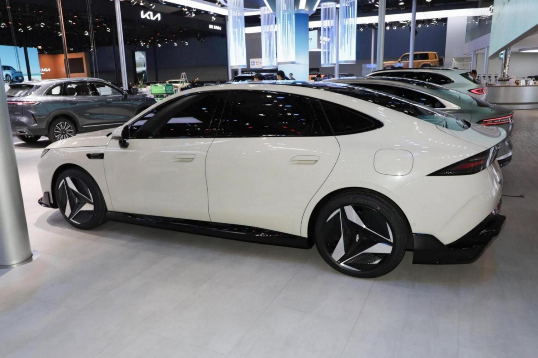 从实拍来看,风云A9的外观设计可以说看点十足,整车延续了概念车的溜背式轿跑造型,线条流畅自然,呈现出蓄势待发的动感姿态,前脸设计极具辨识度,蚌式引擎盖与锐利的LED大灯组无缝衔接,灯腔内L形光带在点亮后科技感十足,前保险杠的设计同样考究,两侧的扰流风道不仅优化了空气动力学性能,还嵌入了精致的“FENGYUN”字母标识,彰显其身份,下部的主动式进气格栅则体现了工程设计的巧思,兼顾了散热需求与续航表现。