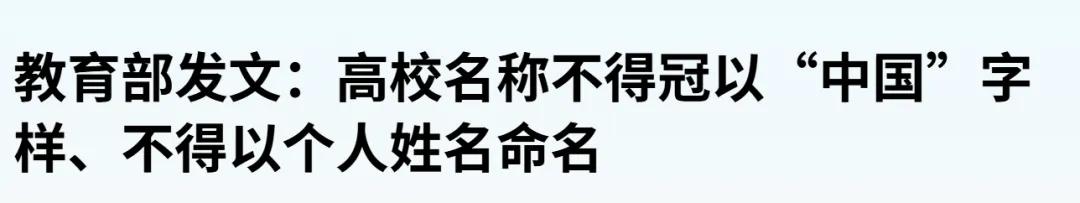 根据教育部规定,高校命名,原则上不得冠以“中华”“中国”“国家”“国际”等代表中国及世界的惯用字样,也不得冠以“华北”“华东”“东北”“西南”等大区及大区变体字样。
