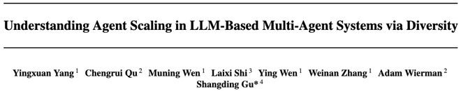 来自上海交通大学、UC Berkeley、加州理工学院以及约翰・霍普金斯大学的联合研究论文Understanding Agent Scaling in LLM-Based Multi-Agent Systems via Diversity 表明:多智能体系统「扩不动」的真正原因,并不是 Agent 不够多,而是信息冗余。 系统实验发现,单纯堆规模收益迅速枯竭,而引入多样性可以显著延缓饱和、以更少的 Agent 获得更强的性能。
