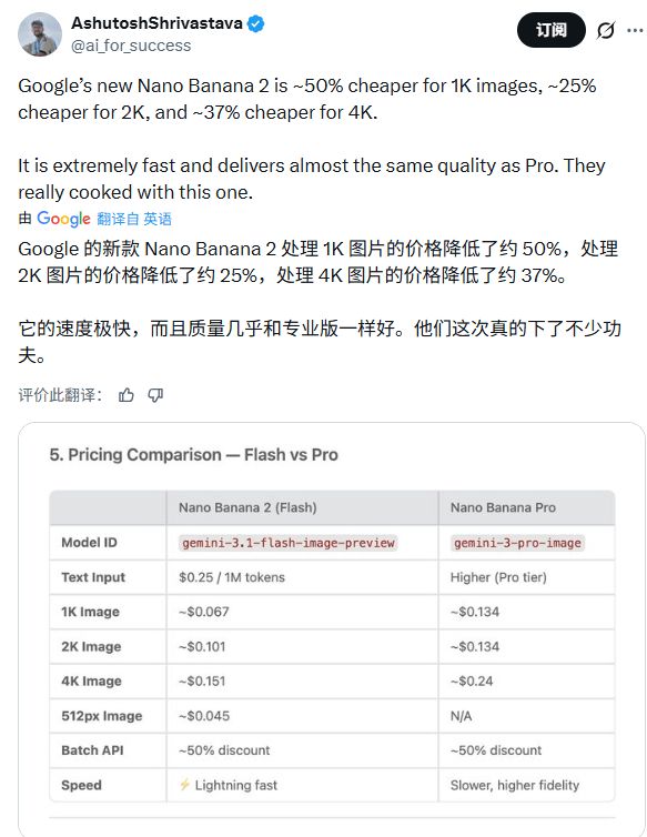 对企业用户来说,这意味着以前需要为高质量图像生成支付Pro级价格,每张1K分辨率(百万像素级)图像成本约0.134美元。现在同样的质量需求,完全可以用Flash级价格满足,成本降到0.067美元。对于每天生成数千张图像的应用场景,这个差距直接决定项目能否从概念验证走向规模化部署。